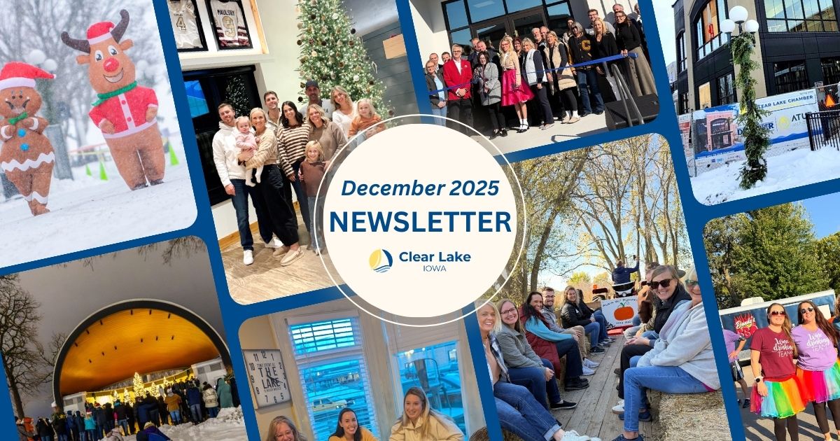 Please continue to follow the newsletter as we explore new content opportunities to support and promote our members. Have ideas of something you’d like to see included? Reach out to our Membership Engagement Director Ashley Weiss at ashley@clearlakeiowa.com.